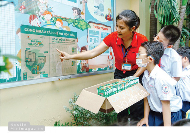 Nestlé đã đặt ra lộ trình cắt giảm phát thải carbon theo từng giai đoạn tiến tới phát thải ròng bằng 0 (Net Zero) vào năm 2050. Cuối năm 2021 Nestlé Việt Nam công bố cam kết trung hòa nhựa đến năm 2025, 100% bao bì có thể tái chế. Cùng với hành trình xây dựng nhóm Đại sứ Xanh, Nestlé Việt Nam đã triển khai hàng loạt chương trình CSR như Nói không với nhựa dùng 1 lần, thu gom và phân loại bao bì đã qua sử dụng... Tại 1.500 trường học, doanh nghiệp này đã khuyến khích trẻ em mang về những thùng giấy rỗng để tiến hành tách nhựa, tái chế thành bóng rổ và ghế dài sử dụng trong trường học và cộng đồng. Điều này không chỉ giảm thiểu rác thải ra môi trường mà còn có tác dụng giáo dục trẻ em về tầm quan trọng của việc tái chế.