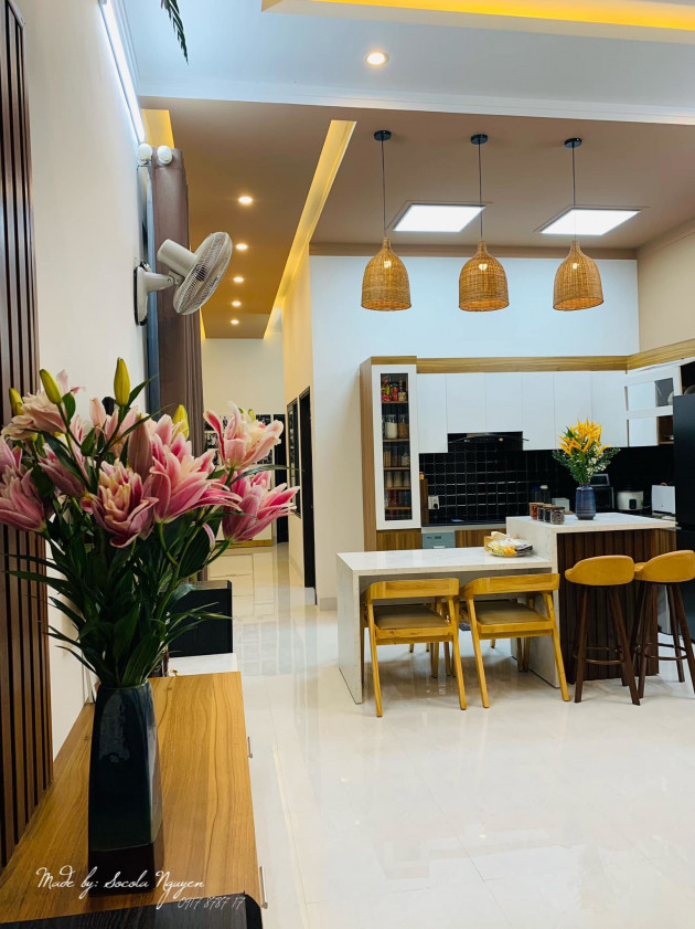 Cuối cùng hai vợ chồng tự lên ý tưởng, vẽ ra giấy, tự tìm thầu xây dựng, tự tìm nguồn cung cấp vật liệu, tự thiết kế và decor nội thất.