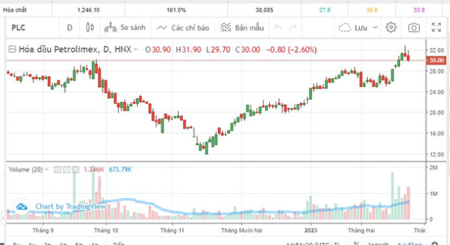 Trên thị trường, thị giá PLC trên thị trường có đà tăng liên tục từ tháng 12/2022. Hiện, PLC đang vào mức 30.000 đồng/cp, gấp đôi so với mức giá 12.000 đồng/cp hồi đầu năm.