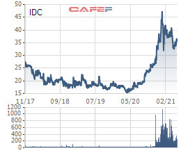 Chốt phiến 26/5, cổ phiếu IDC ghi nhận thị giá là 35.600 đồng/cp.