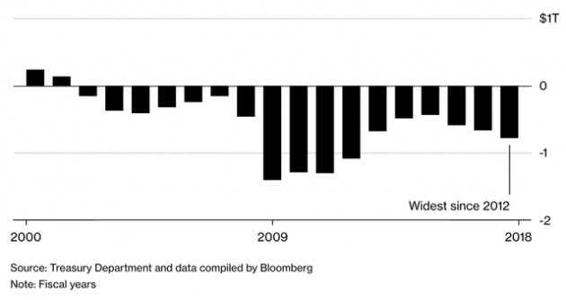 Thâm hụt ngân sách đã tiếp tục leo thang trong những năm gần đây, làm gia tăng những lo ngại về khoản nợ hơn 21,5 tỷ USD của quốc gia này sẽ không thể nằm trong tầm kiểm soát. Kho Bạc báo cáo trong tháng này rằng chính phủ sẽ trả mức lãi suất lên tới 523 tỷ USD trong năm tài chính 2018, mức cao nhất từ trước đến nay.