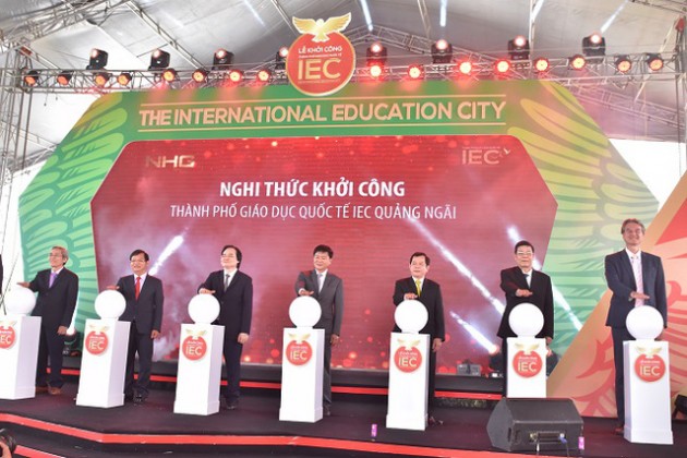 Bộ trưởng Bộ Giáo dục – Đào tạo Phùng Xuân Nhạ (thứ ba từ trái sang) cùng lãnh đạo tỉnh Quảng Ngãi và Tập đoàn giáo dục Nguyễn Hoàng ấn nút khởi công dự án “Thành phố giáo dục quốc tế” đầu tiên tại Quảng Ngãi .Xây dựng thành phố giáo dục quốc tế IEC đầu tiên tại Quảng Ngãi, NHG đang mở ra cơ hội được học tập trong môi trường giáo dục chuẩn quốc tế cho học sinh Quảng Ngãi và các tỉnh miền Trung. Dự án được dự kiến sẽ hoàn thành trong tháng 5/2019.