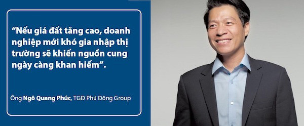 Đồng quan điểm trên, ông Ngô Quang Phúc - TGĐ Phú Đông Group cho rằng, với các dự án bất động sản nhà ở, tiền đất thường chiếm 10-14% giá thành. Do đó, khi giá đất tăng, giá bán nhà đất chắc chắn phải tăng. Không những thế, chi phí về đất tăng còn kéo theo tất cả các sản phẩm liên quan đến ngành xây dựng như xi măng, sắt thép, gạch… cũng sẽ tăng giá theo, từ đó đẩy giá thành nhà đất lên cao.
